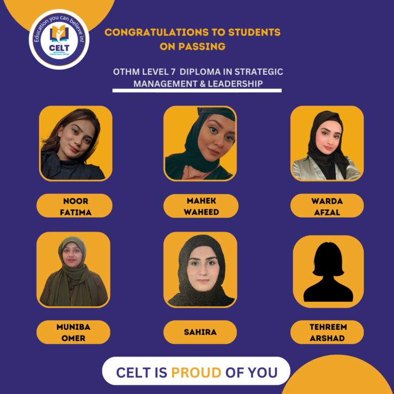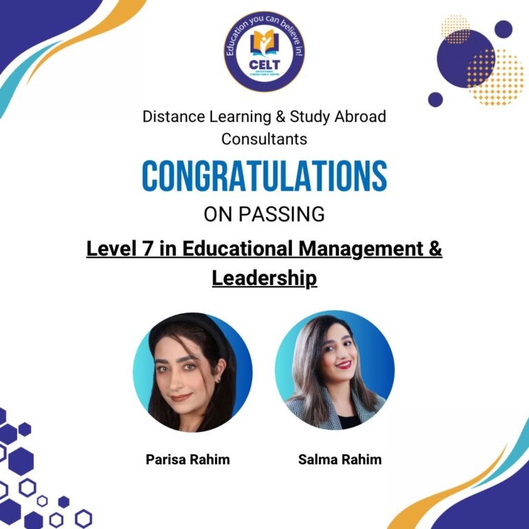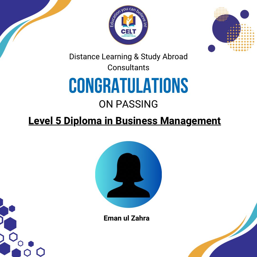 CELT institution has played and is playing an important role in the development of my education background from Bachelors to the countinuing journey of masters it has helped me to get along with all the qualifications and guiding me even further. It not only focus on the professional development but also on the personal and personality development of its students. The faculty members, administration and the mentor of each and every member of the institution Ms. Hina Saleem are all very cooperative and dedicated. I would highly recommend this institution for further studies.