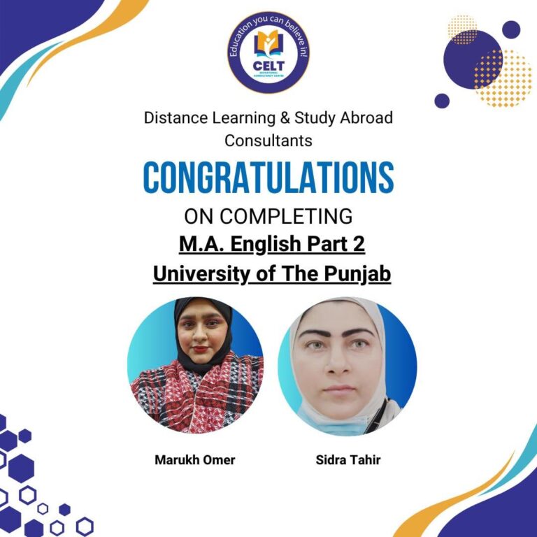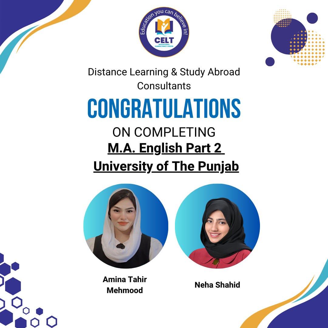 It is with great pleasure that I write this testimonial for the Creators Educational Centre (CELT). I am grateful to the administration, staff and especially Ms Hina for their unwavering support and guidance throughout my academic journey. The MA (English Literature) degree I earned from Punjab University has been instrumental in shaping my career and personal growth. The faculty members are knowledgeable, experienced, and passionate about their work. I am confident that the skills I have acquired will serve me well in my future endeavors. One of the things I appreciate most about CELT is the flexibility of the programs and fee structure. I found the fees quite reasonable as compared to other Universities, as an overseas student especially its an amazing platform to upgrade your degree. I would honesty recommend CELT to everyone and a big thanks to Ms. Hina♡ and CELT for an unforgettable experience!